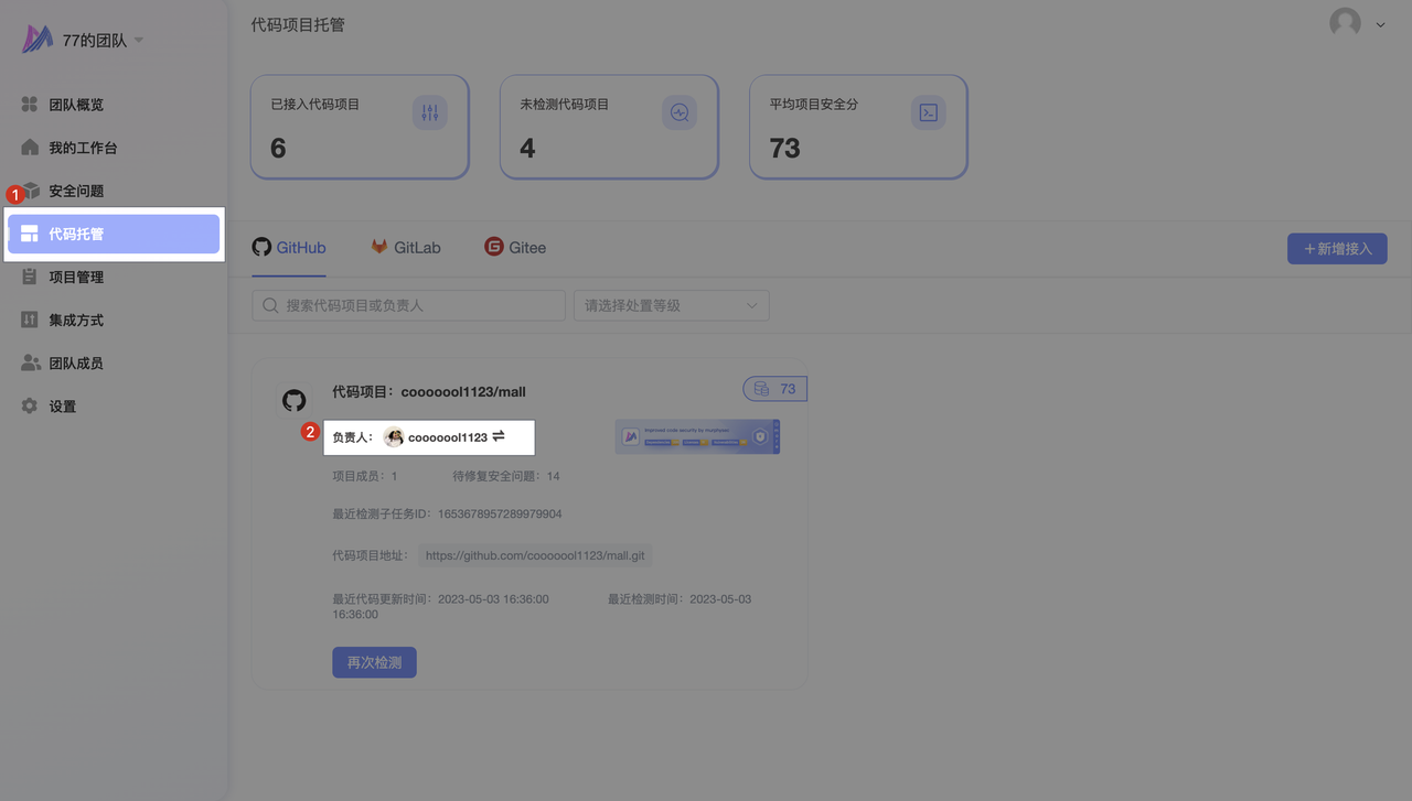 指派代码项目可以更改项目负责人,指派项目的实际负责人来进行项目安全管理。