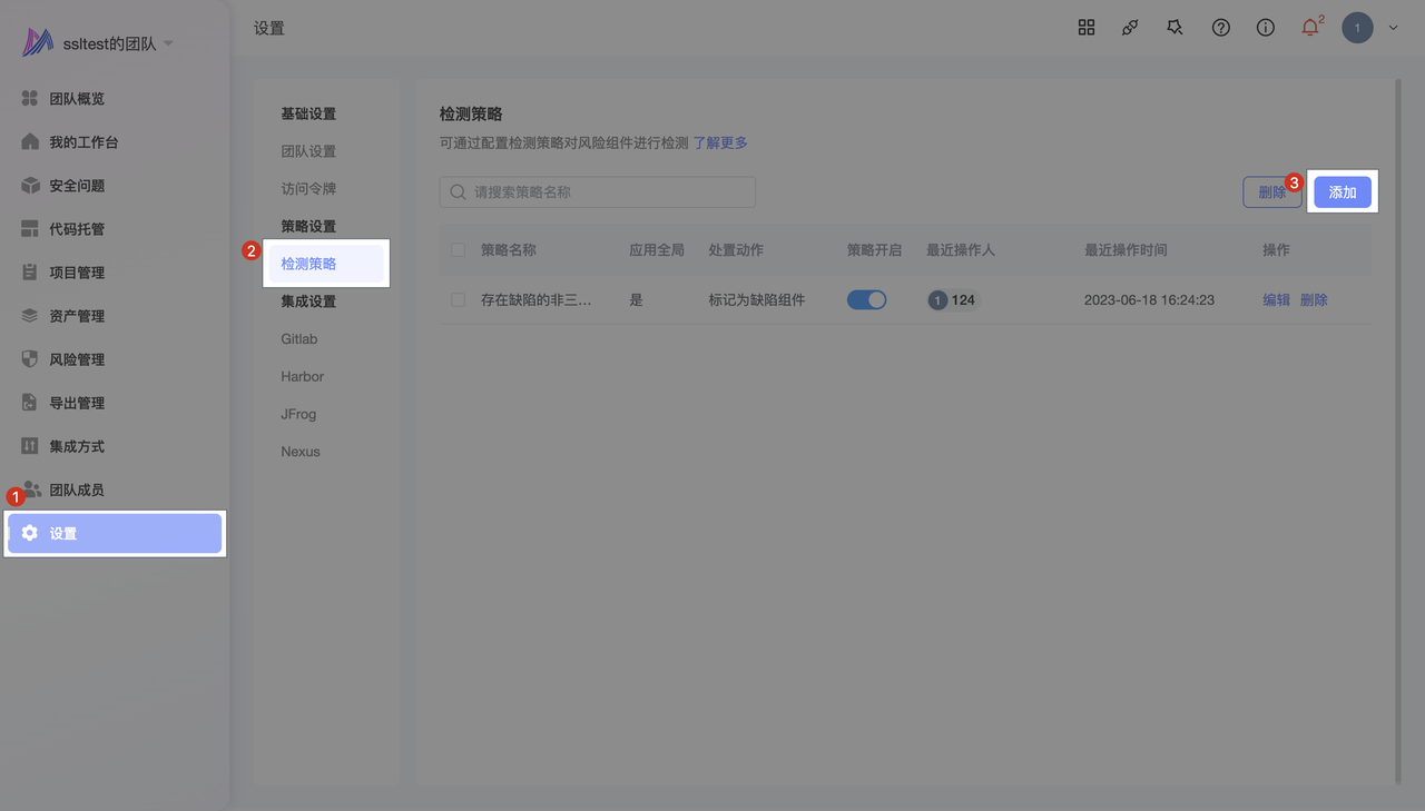 本文档将为您介绍如何设置检测策略,以及当设置的检测策略被命中时,对组件的处理方式。包括介绍打标签、标记为缺陷组件两种的不同处置动作以及组件详情的展示。