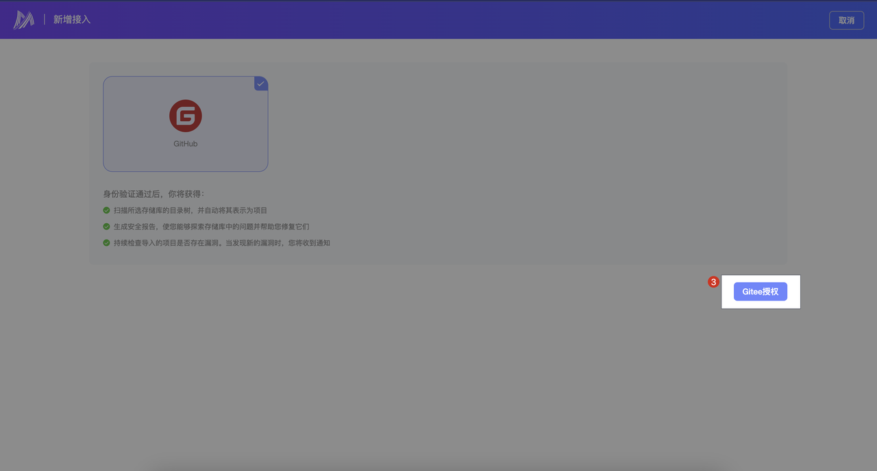 - 点击 集成方式 -> Gitee 立即进入 -> Gitee 授权