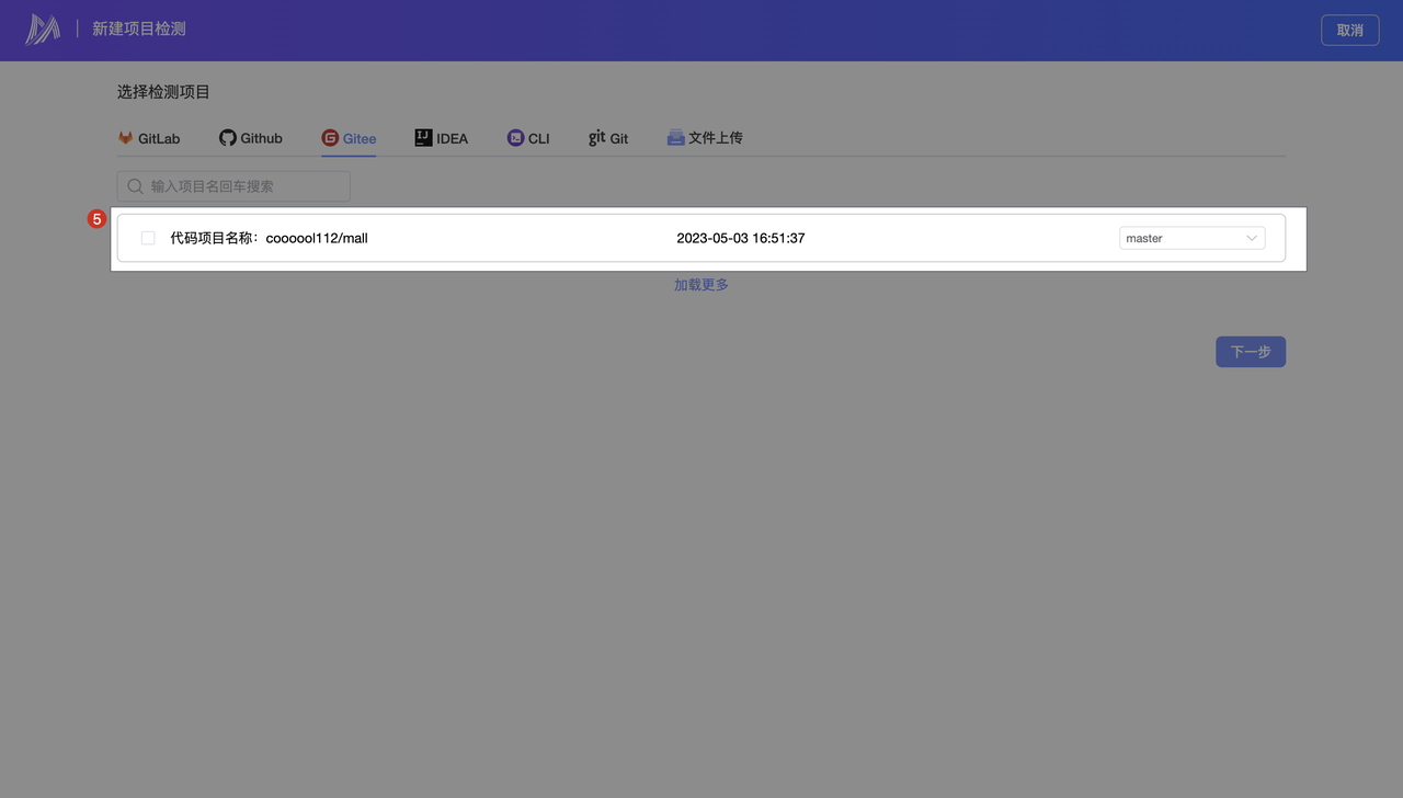 - 点击 设置检测配置 -> 选择所属项目组 -> 开始检测 如需其他配置请进入高级配置