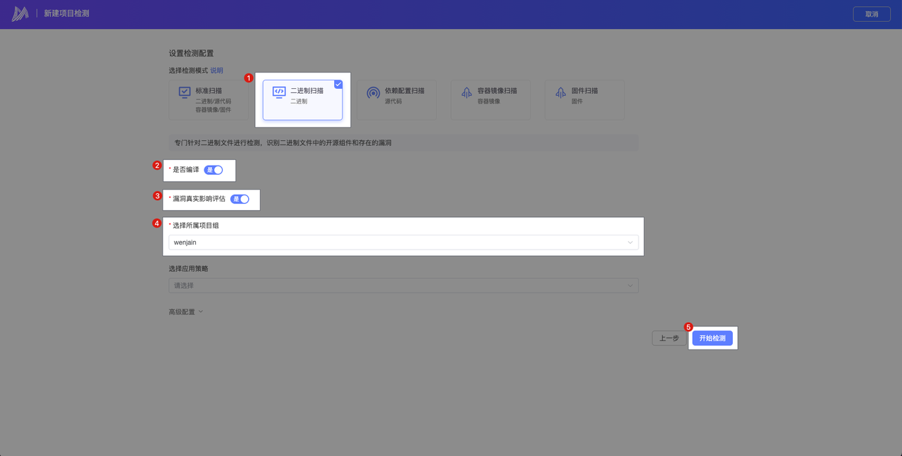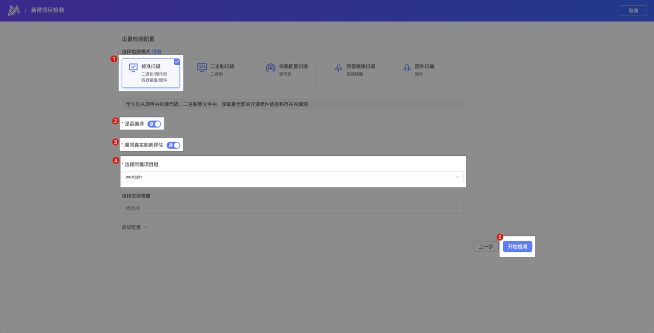 - 方式一:标准扫描 介绍:全方位从项目中的源代码、二进制等文件中,获取最全面的开源组件信息和存在的漏洞