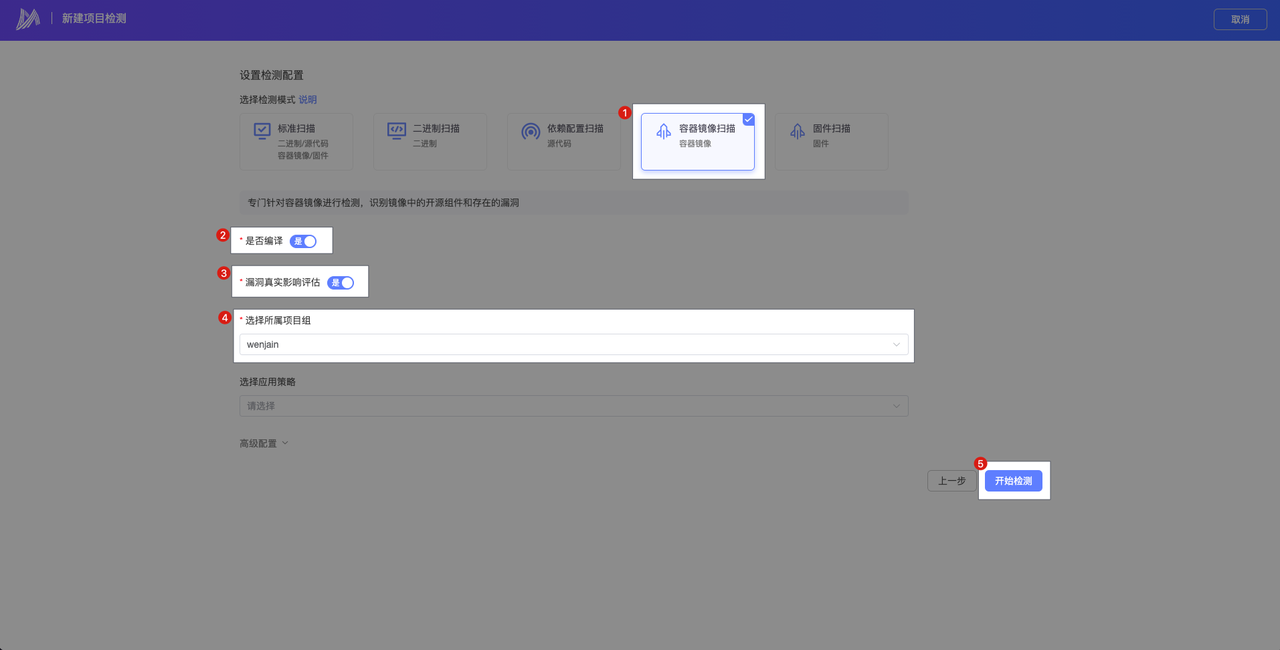 - 点击 集成方式 -> 文件上传 -> 上传文件检测 -> 下一步