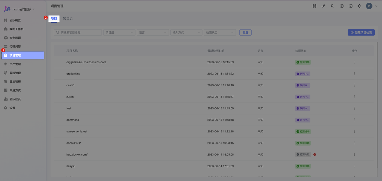 可以通过项目管理中的项目/项目组去查看检测完成的项目